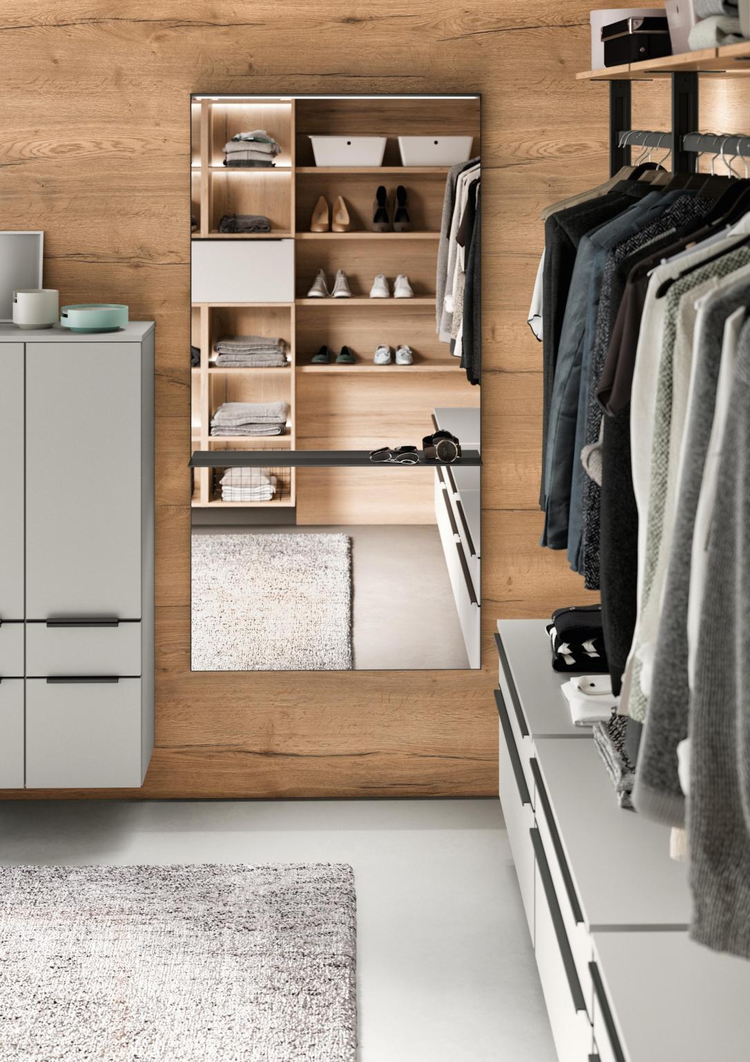 Setzen Sie Ihren Traum von einer eigenen Ankleide um. Durch die intelligenten Module von nobilia können Sie Ihre Ankleide individuell zusammenstellen und den Raum optimal nutzen: Genug Platz für Ihre Kleidung und gerne auch, um Ihre Lieblingsstücke zu präsentieren.